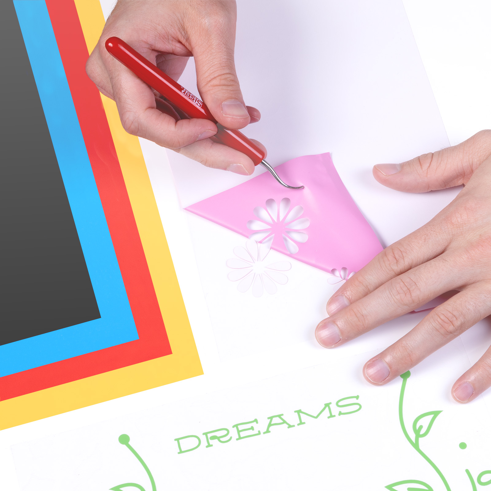 Weeding: Remove excess vinyl using a Siser Weeding tool.
